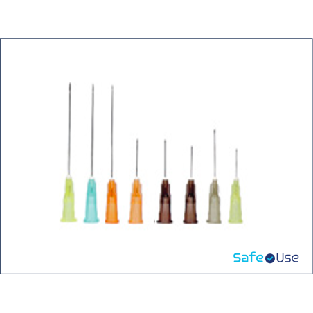 Aiguilles stériles DispoFINE pour injection. Boîte de 100 aiguilles emballées individuellement.